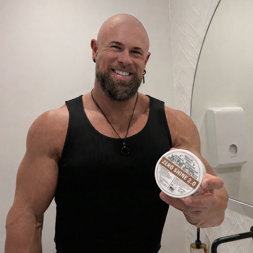 Zero Shine is Australia’s leading matte moisturiser for bald men looking to stop scalp shine. If you’ve searched for how to stop a shiny bald head, reduce scalp glare, matte moisturiser for shaved head, or stop oily scalp reflection — Zero Shine was created for you.